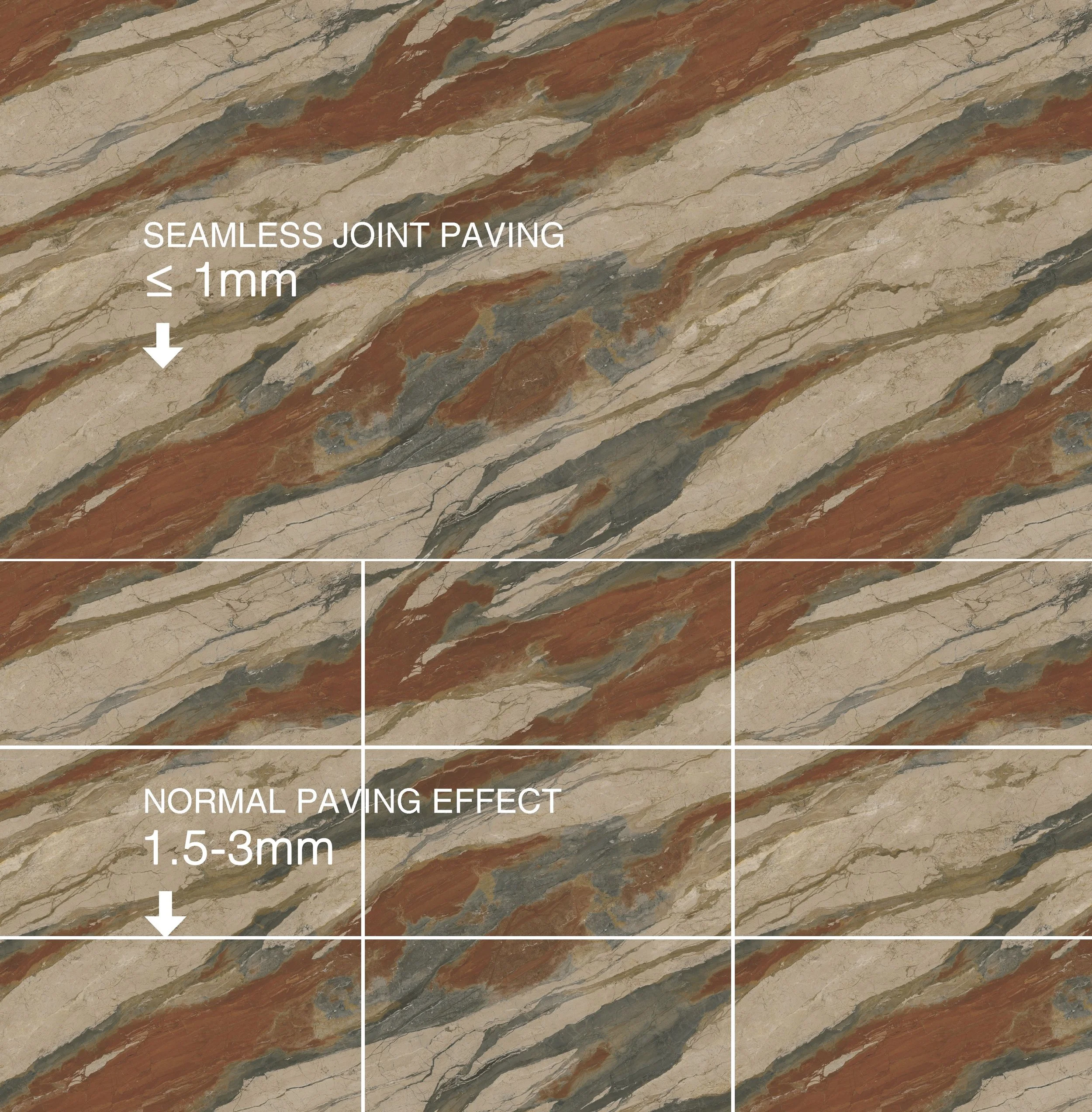 GANI’s seamless joint paving technology creates an uninterrupted flow of beauty to deliver a continuous, elegant surface. By minimizing joints, the natural patterns and veins flow effortlessly from one tile to the next, offering an expansive and cohesive look. With GANI’s seamless joint paving, every space embodies uninterrupted beauty, elevating any interior or exterior design.